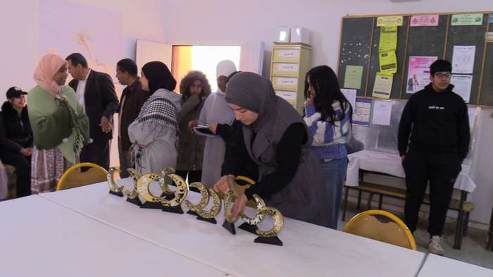 كما قدمت بعض المتعلمات من شعبة الفنون التطبيقية نيابة عن زملائهم وزميلاتهم كلمة إجلال في حق الأستاذات تقديرا وتمجيدا واعترافا بعطائهن والتي عبرت احداهن من خلالها عن دلالات الاحتفاء باليوم العالمي للمرأة والتي أكدت فيها أيضا على مكانة المرأة كمكون أساسي ضمن المنظومة التربوية والمجتمعية وحضورها الوازن في مختلف القطاعات وعلى كافة المستويات، و انخراطها الفاعل والواعد في الحراك المجتمعي مساهمة منها في كسب رهان التنمية بكل معانيها وأبعادها الاقتصادية والاجتماعية والسياسية والثقافية والتربوية .