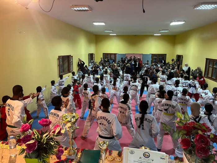 وفي الختام تم توزيع شواهد وكوؤس تقديرية للمشاركين والمشاركات ودعوة الجميع لممارسة الرياضة رياضة التيكواندو اخلاق وتربية.