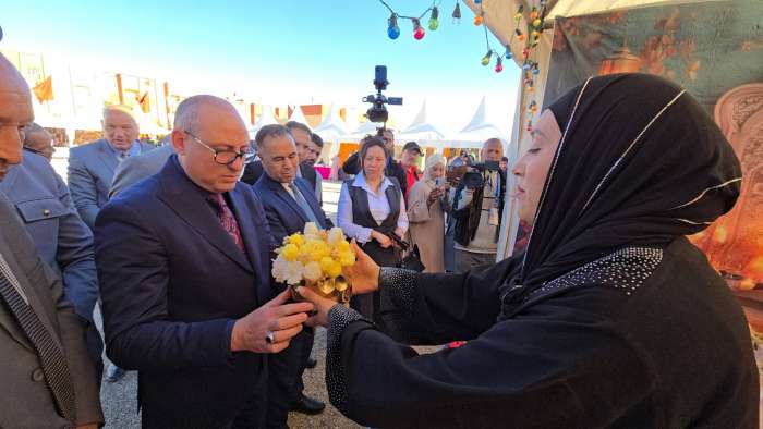 الكاتب العام والوفد المرافق له زاروا المعرض خيمة خيمة وقدمت لهم الشروحات حول هذه المنتوجات، كما استمع الى ما تعانيه العارضات والعارضون في ما يتعلق بالدعم والتسويق.