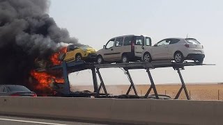 فيديو احتراق سيارات جديدة على متن شاحنة النقل بالطريق السياراﻹثنين 27 يوليوز 2015 على الساعة 18:04:38 |