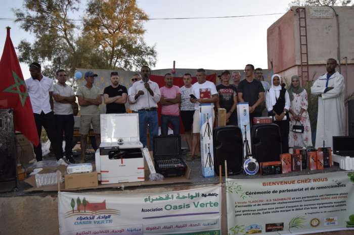 كما قدّمت جمعية "ماروك أند بوط" مجموعة من التجهيزات اللوجستيكية لفائدة وحدة تلاكلو، من بينها الة النسخ، تجهيزات صوتية، وإذاعة مدرسية، مما أدخل الفرحة على التلاميذ والساكنة التي عبرت عن امتنانها العميق. في المقابل، بادرت جمعية الواحة الخضراء إلى تقديم تذكارات رمزية للجمعية الفرنسية ولمدرسة "لي كوريغان"، عربون صداقة ومحبة.