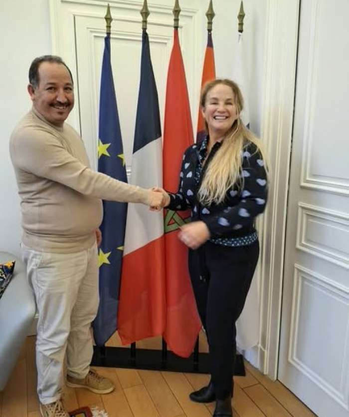 في زيارة عمل لفرنسا التقى يوم امس الجمعة 23 يناير الجاري رئيس مجلس جماعة النيف اقليم تنغير محمد بن يوسف بنائبة عمدة مونبيلي بفرنسا .